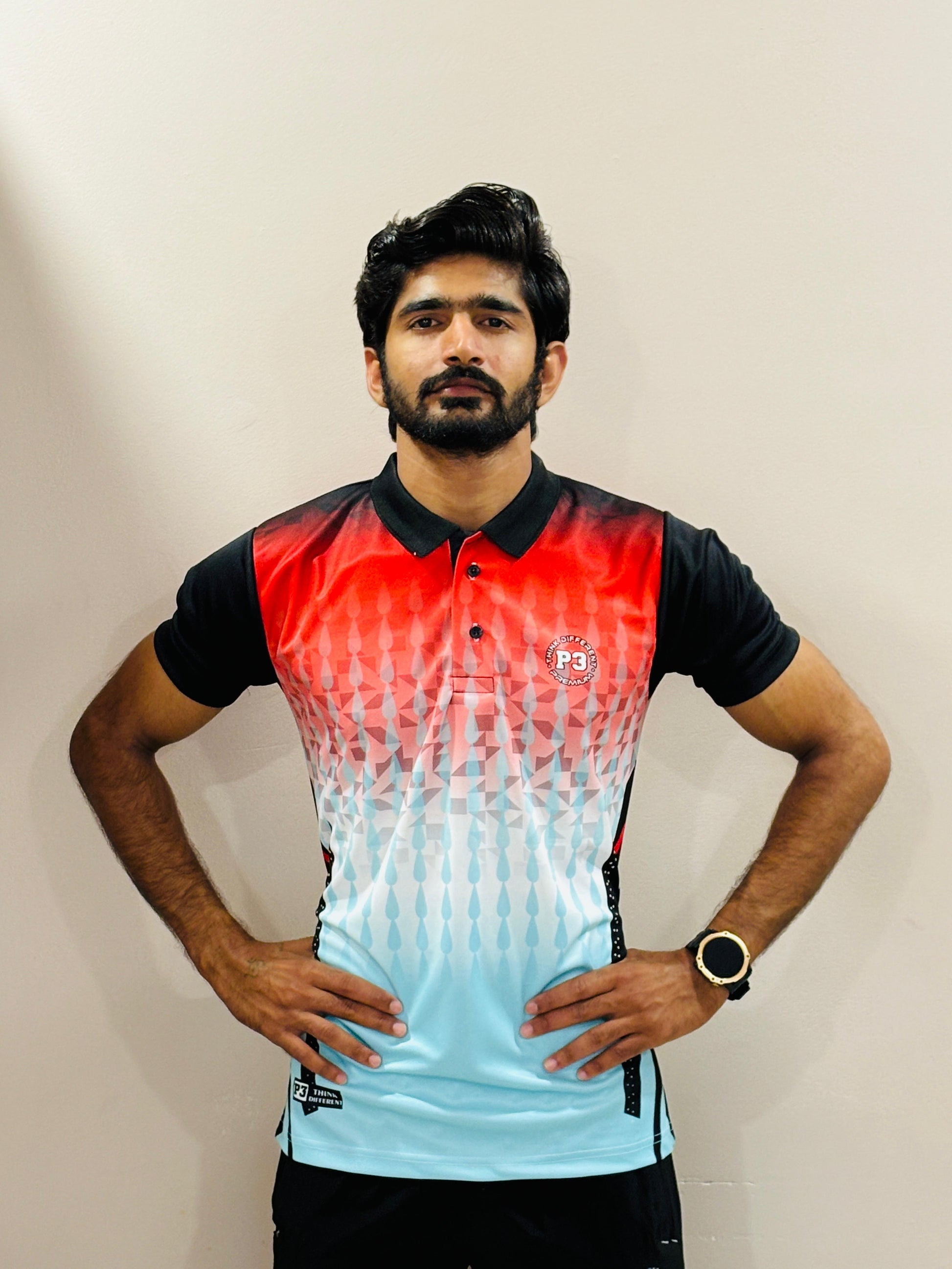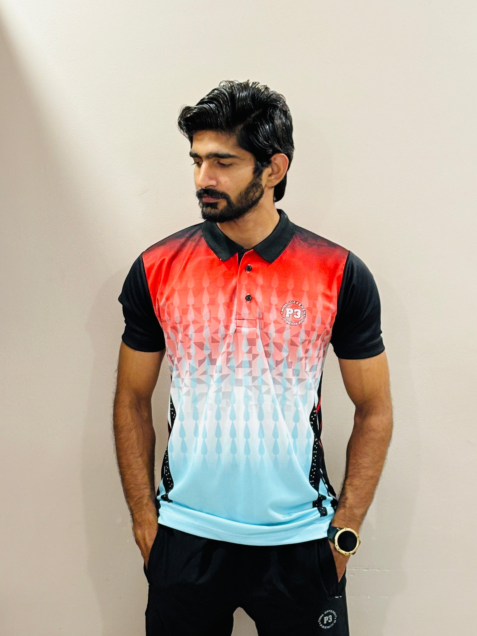 Ideal for all weather conditions, this polo features a stylish self-designed print, short sleeves. Elevate your active wardrobe with P3 Flex Sport Tee blend of style and functionality.