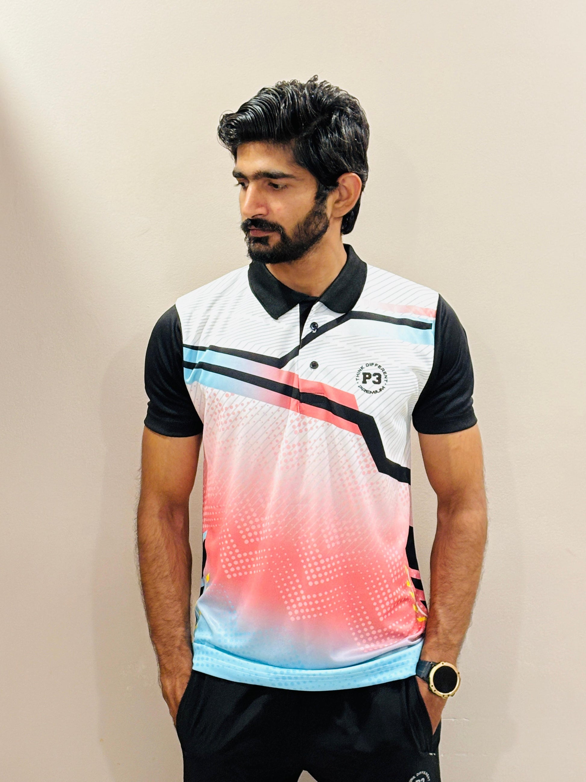 Ideal for all weather conditions, this polo features a stylish self-designed print, short sleeves. Elevate your active wardrobe with P3 Flex Sport Tee blend of style and functionality.