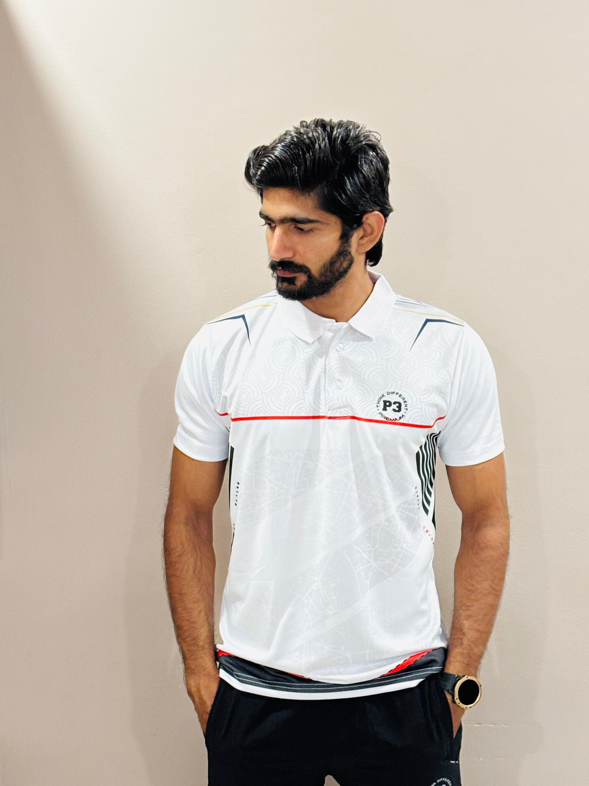 Ideal for all weather conditions, this polo features a stylish self-designed print, short sleeves. Elevate your active wardrobe with P3 Flex Sport Tee blend of style and functionality.