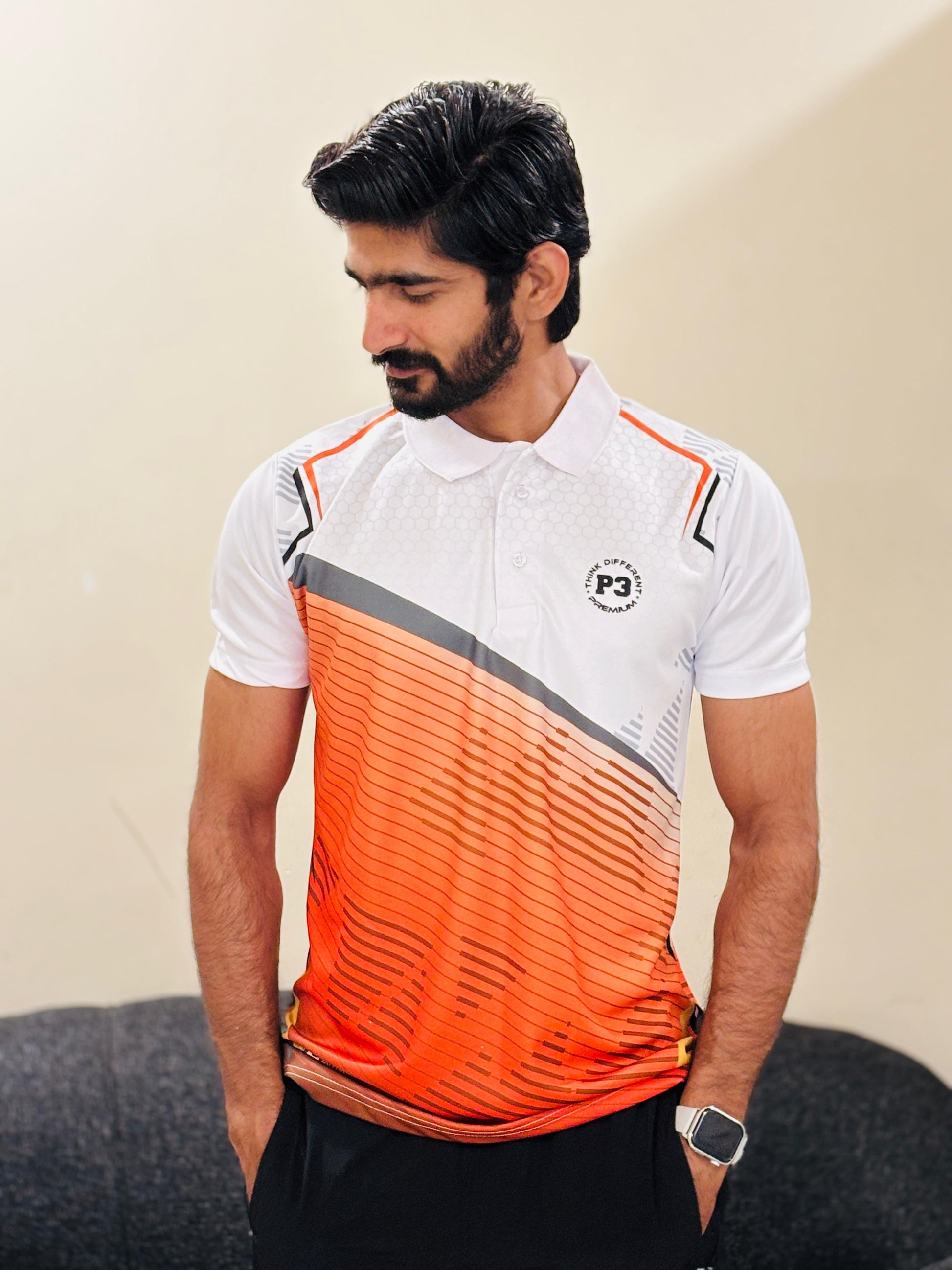 Ideal for all weather conditions, this polo features a stylish self-designed print, short sleeves. Elevate your active wardrobe with P3 Flex Sport Tee blend of style and functionality.