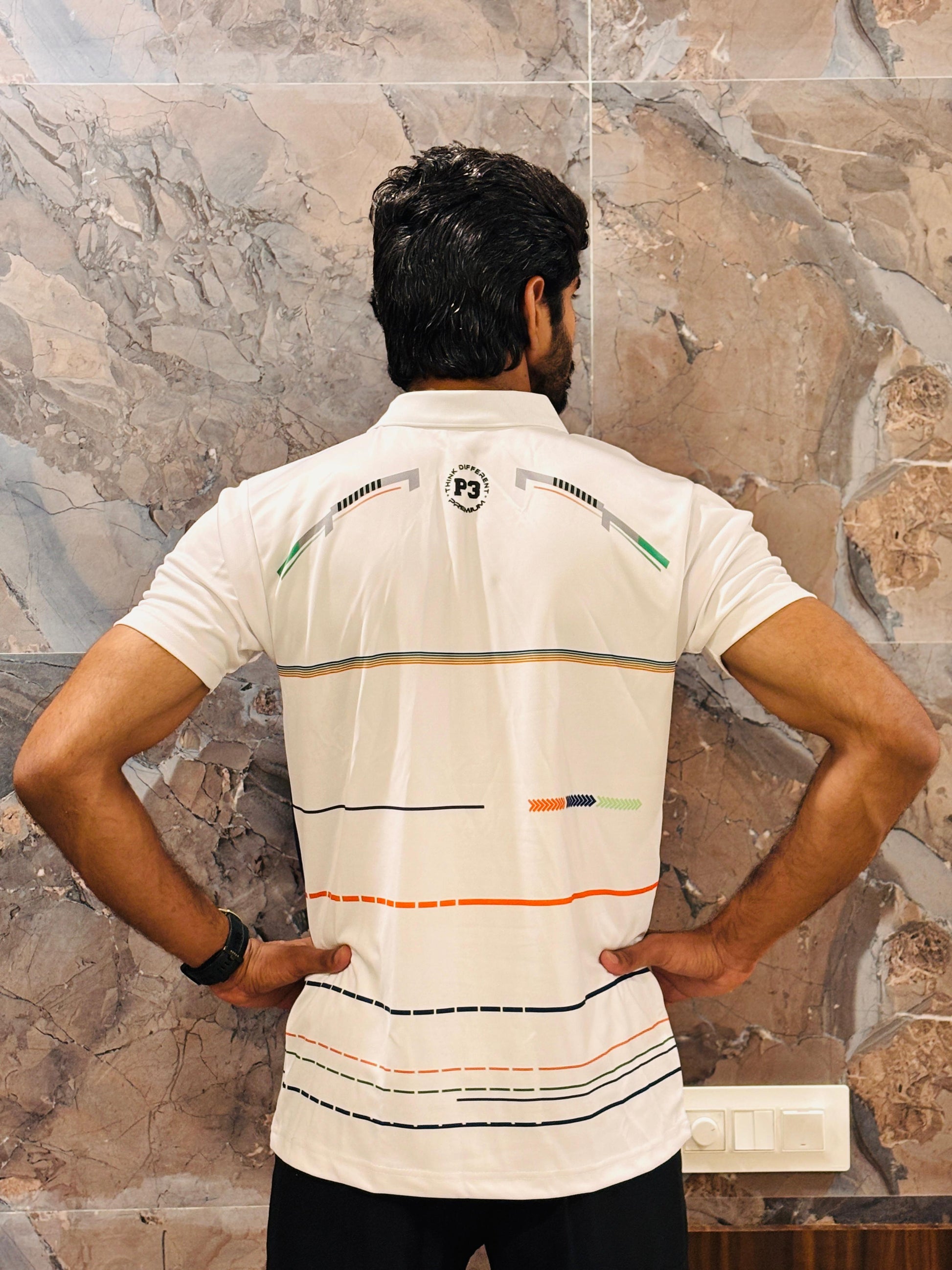 Ideal for all weather conditions, this polo features a stylish self-designed print, short sleeves. Elevate your active wardrobe with P3 Flex Sport Tee blend of style and functionality.
