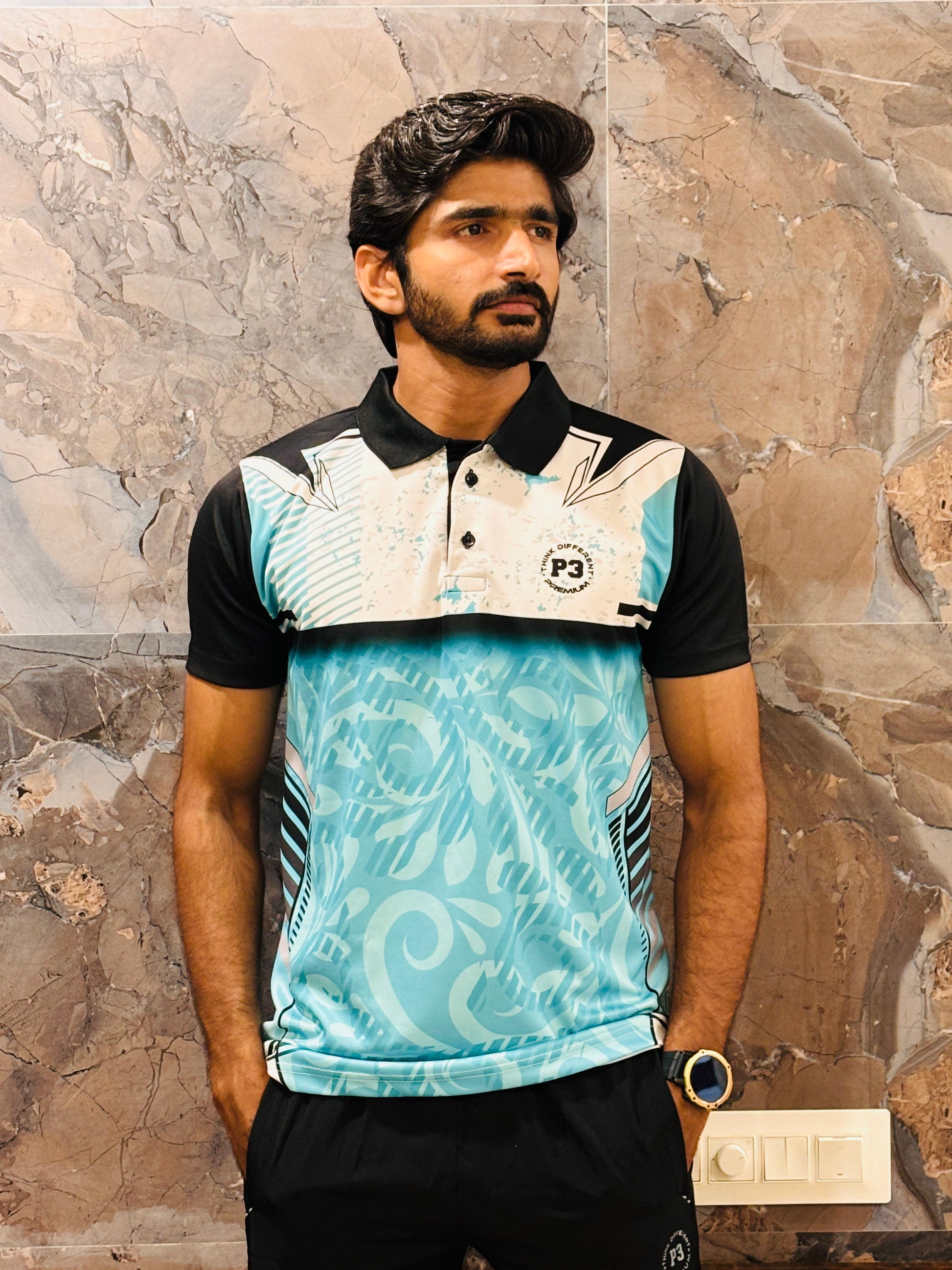 Ideal for all weather conditions, this polo features a stylish self-designed print, short sleeves. Elevate your active wardrobe with P3 Flex Sport Tee blend of style and functionality.