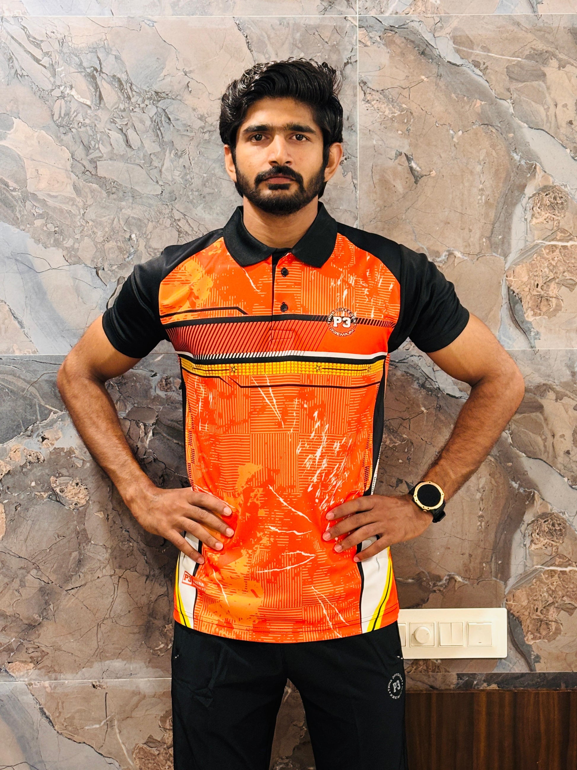 Ideal for all weather conditions, this polo features a stylish self-designed print, short sleeves. Elevate your active wardrobe with P3 Flex Sport Tee blend of style and functionality.