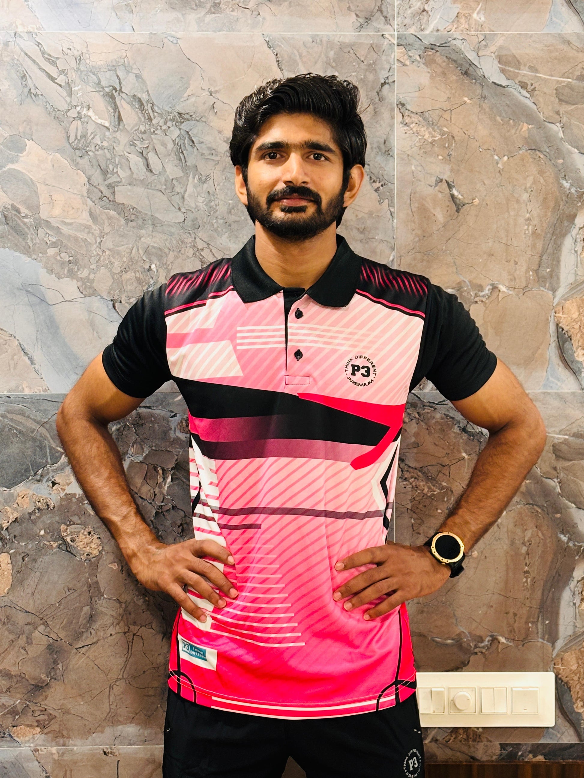 Ideal for all weather conditions, this polo features a stylish self-designed print, short sleeves. Elevate your active wardrobe with P3 Flex Sport Tee blend of style and functionality.