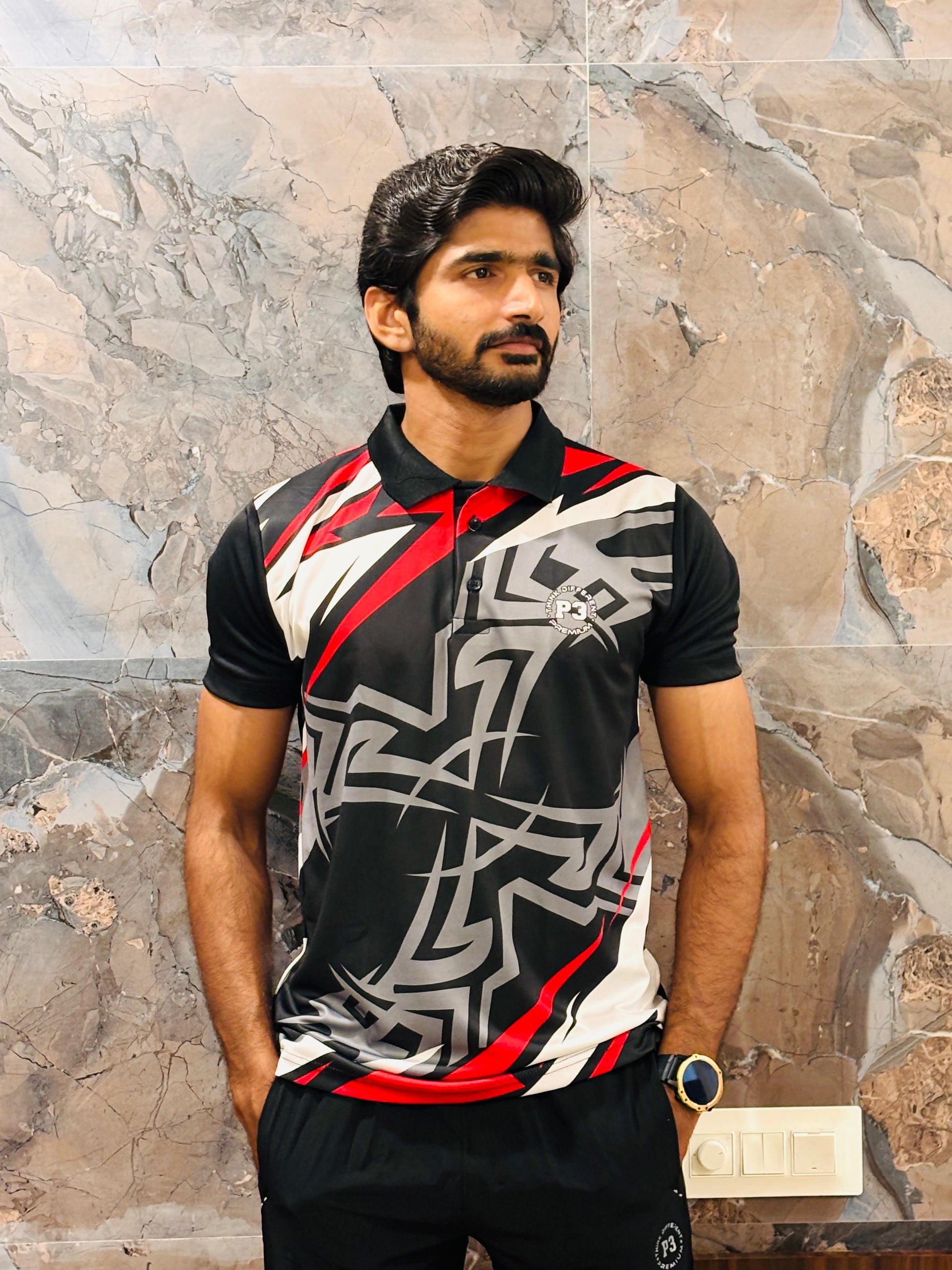 Ideal for all weather conditions, this polo features a stylish self-designed print, short sleeves. Elevate your active wardrobe with P3 Flex Sport Tee blend of style and functionality.
