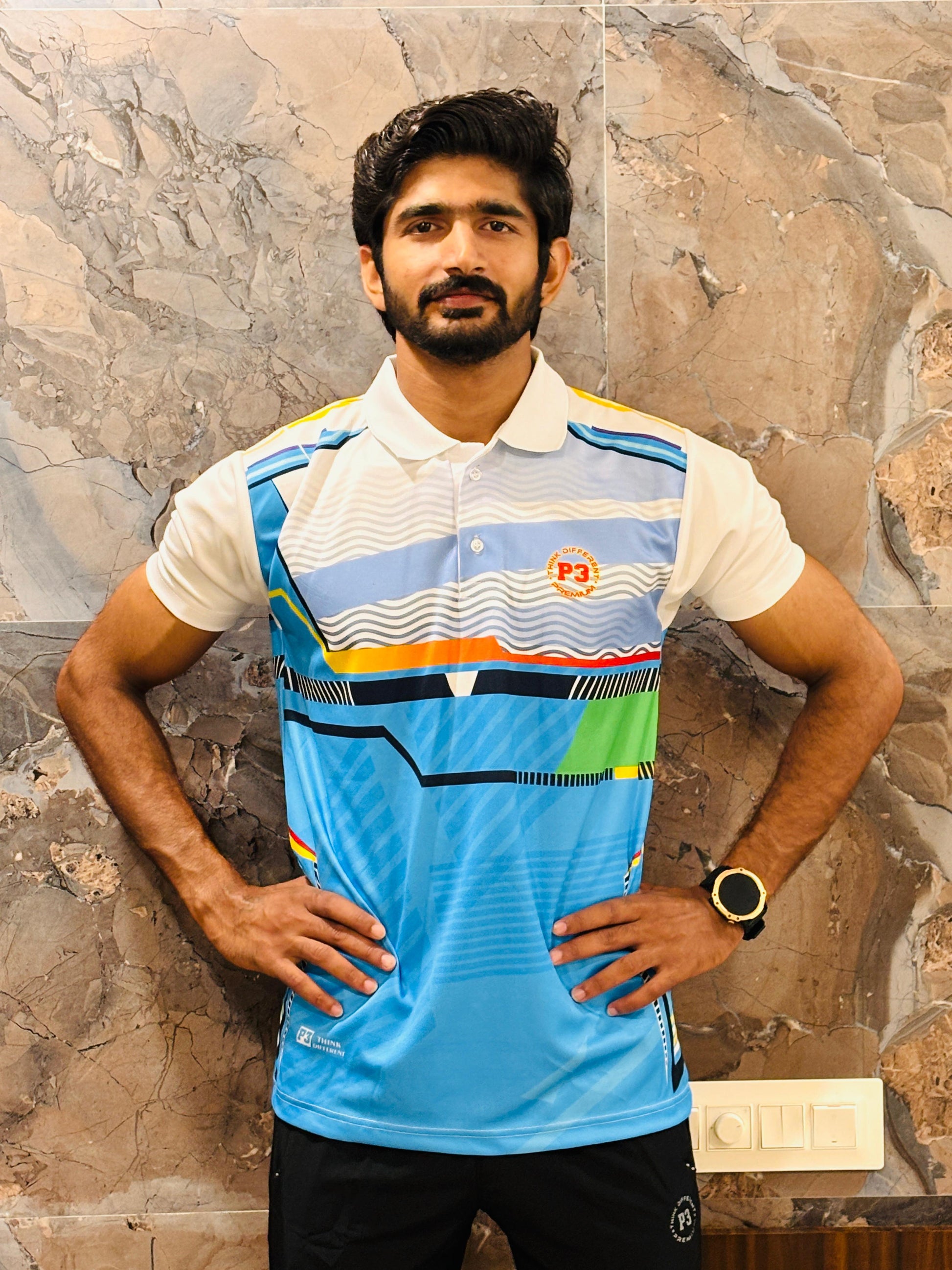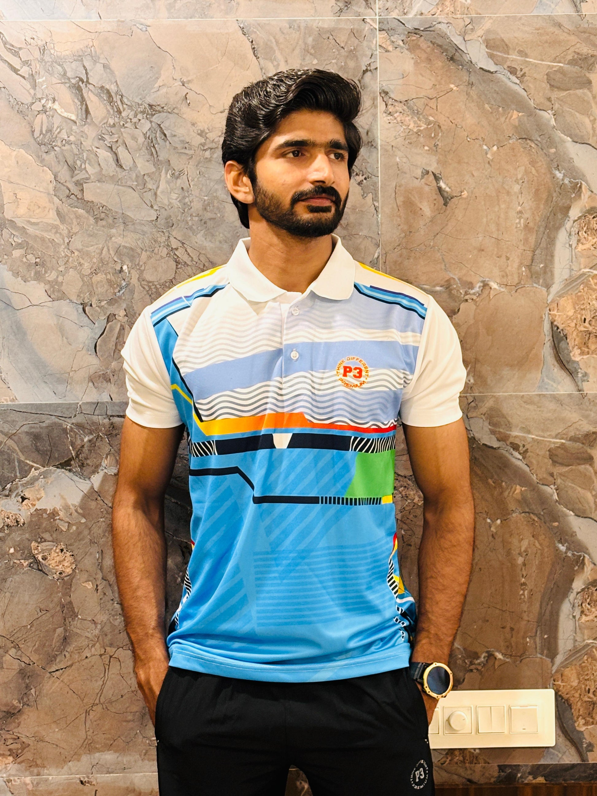 Ideal for all weather conditions, this polo features a stylish self-designed print, short sleeves. Elevate your active wardrobe with P3 Flex Sport Tee blend of style and functionality.