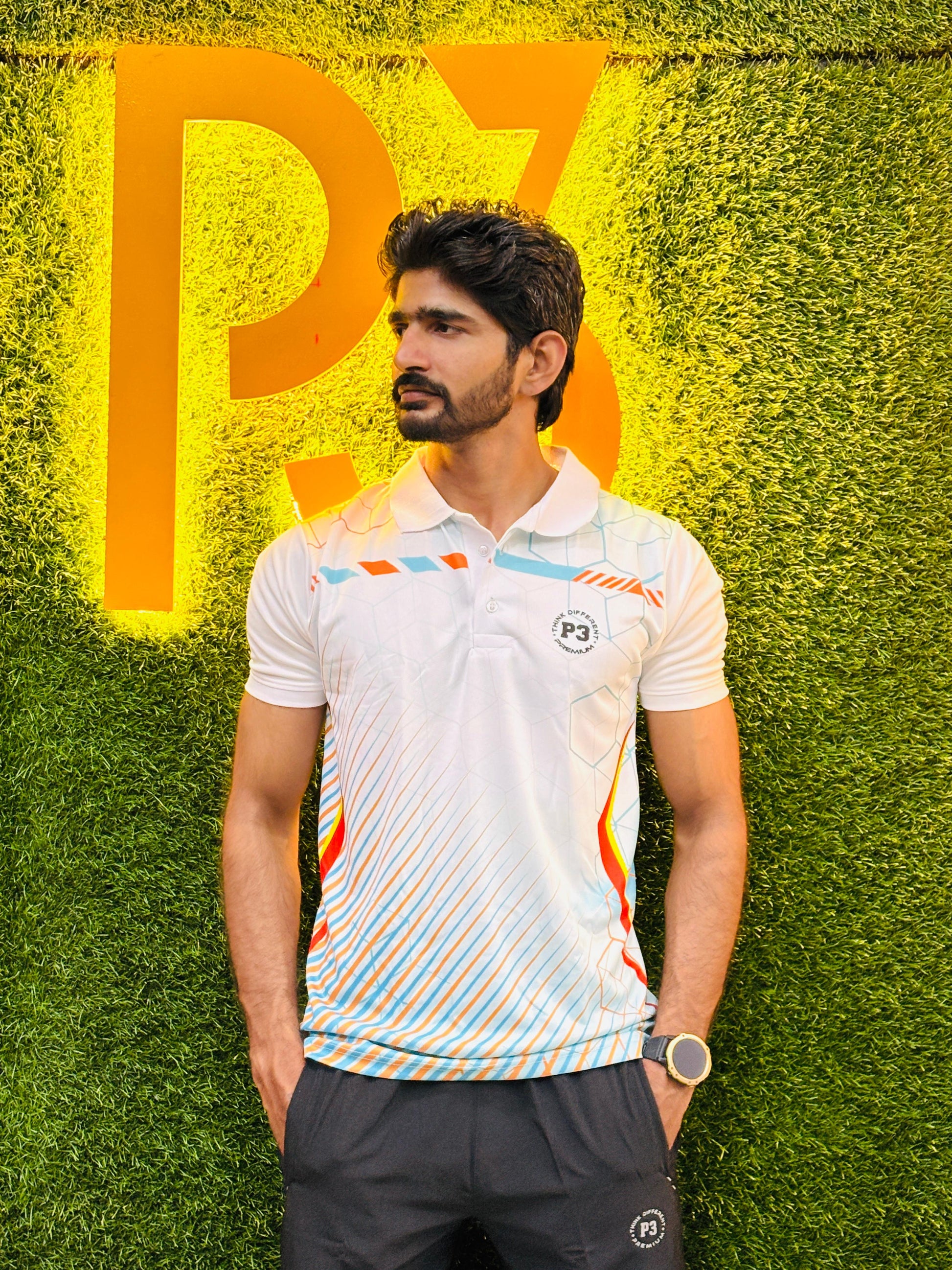 Ideal for all weather conditions, this polo features a stylish self-designed print, short sleeves. Elevate your active wardrobe with P3 Flex Sport Tee blend of style and functionality.