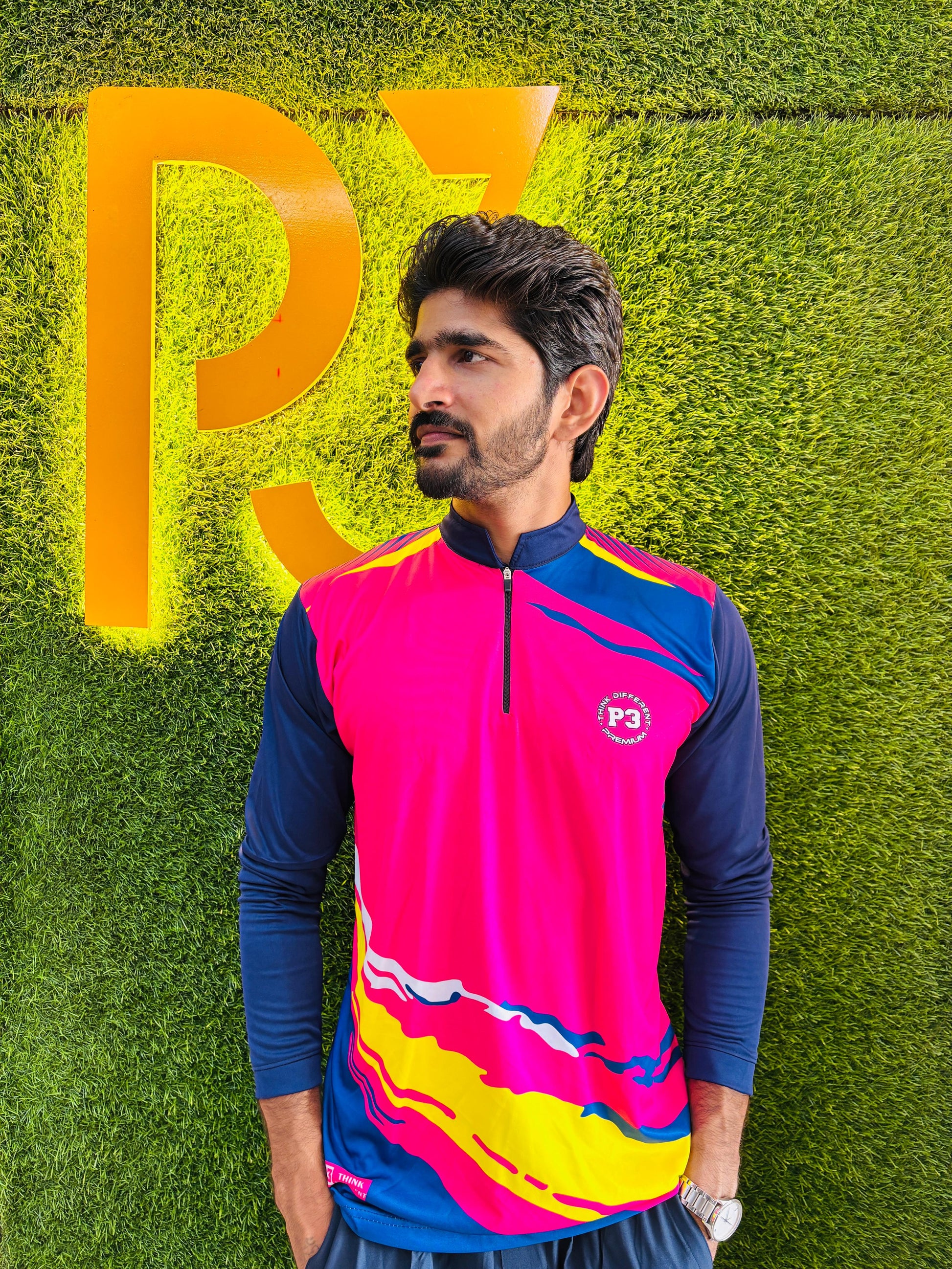 Ideal for all weather conditions, this polo features a stylish self-designed print, full sleeves. Elevate your active wardrobe with P3 Flex Sport Tee blend of style and functionality.